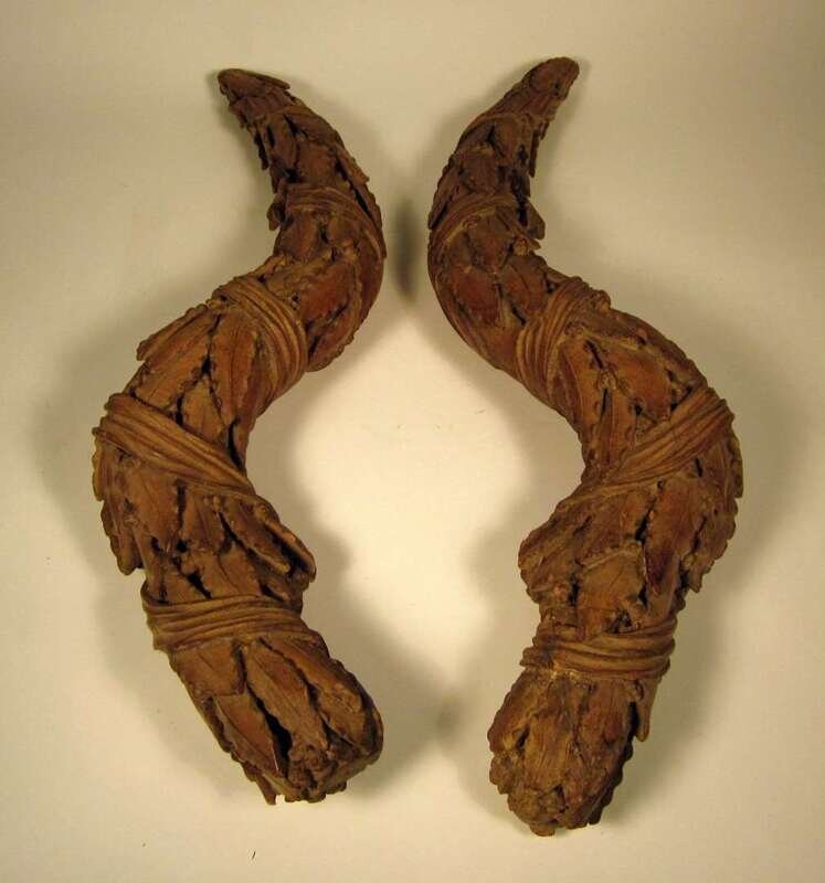 Each of S-form carved as ribbon tied laurel garlands. (2).