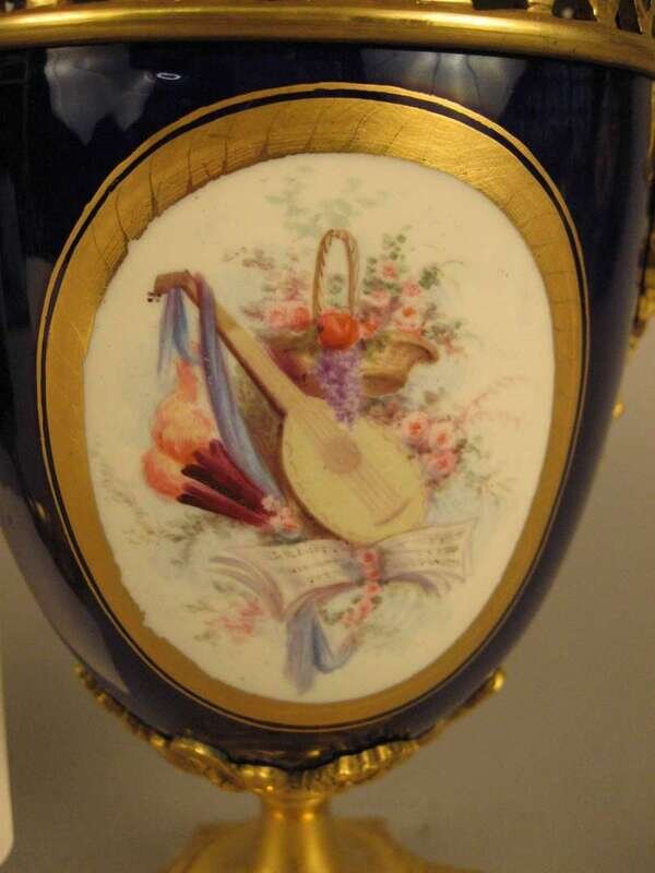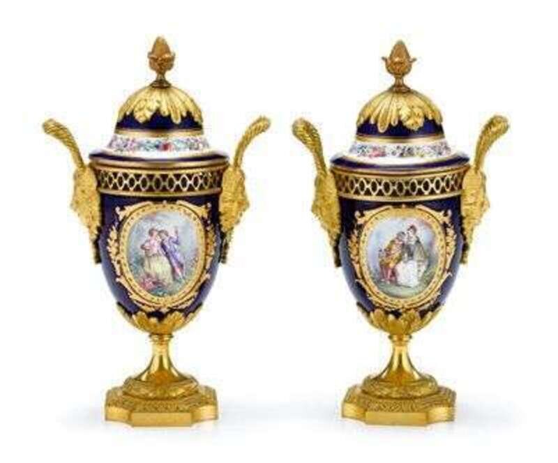 Pair of Sevres gilt bronze and porcelain brules parfums 19th century