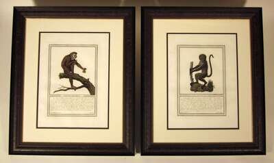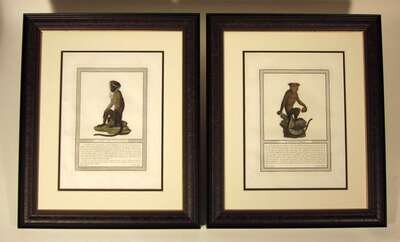 Four hand-colored engravings of monkeys jacobs, 1812, milano