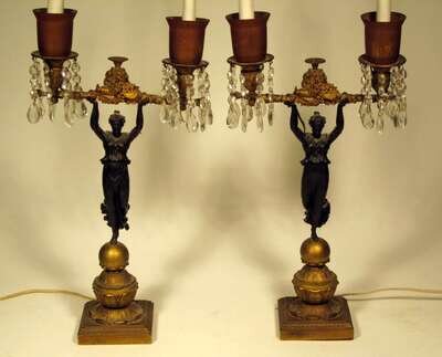 Pair of Empire style gilt and patinated bronze candelabra mid 19th century
