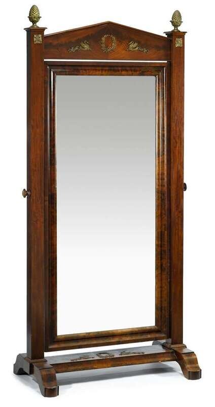 Empire gilt metal mounted mahogany cheval mirror 19th century