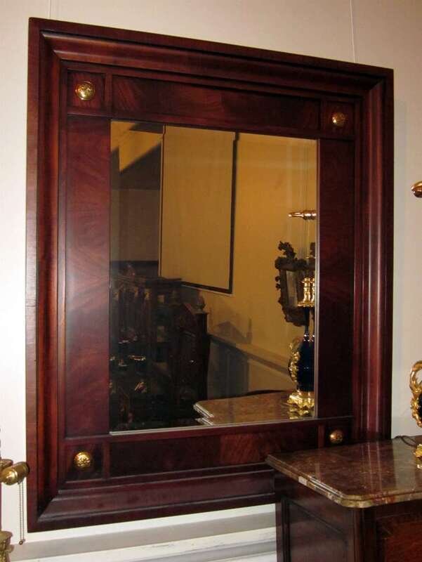Large Empire style gilt metal mounted mahogany mirror modern, retailed by ralph lauren