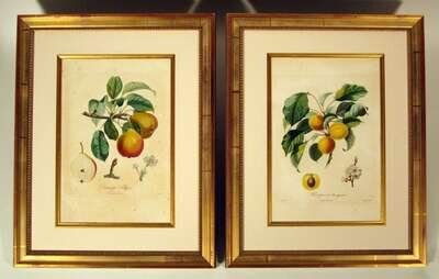 Four hand colored stipple engravings of fruit poiteau, paris, 1824
