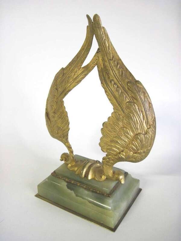 The stand modeled as a pair of gilt bronze wings mounted on a rectangular green onyx base; the miniature of a young beauty.