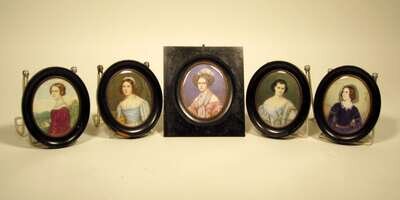 Group of five German miniature portraits of beauties 19th century