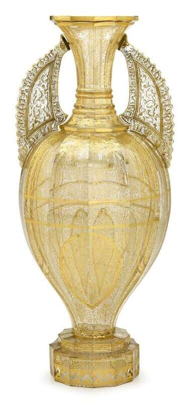 Bohemian gilt decorated and clear glass amphora late 19th century
