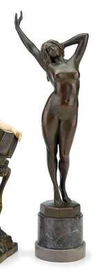 Medium brown patina, raised on marble base, signed Schmidt Hofer.