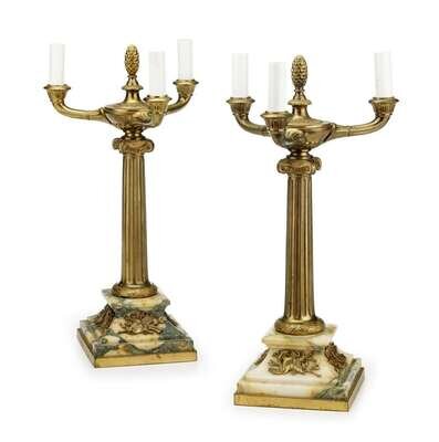 Pair of Austrian Neoclassical gilt bronze and marble candelabra circa 1900