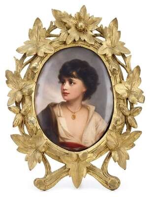 Oval, impressed KPM and scepter marks, in a carved and pierced giltwood frame.