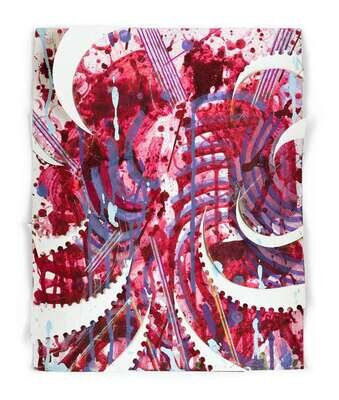 Beet juice, gouache, pigment, binder, and collage on paper in three parts, framed separately