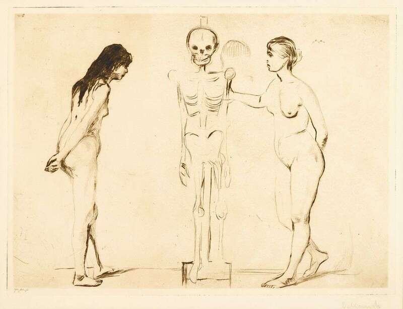 EDVARD MUNCH (NORWEGIAN 1863-1944) "DIE BEIDEN MAEDCHEN UND DAS GERIPPE"