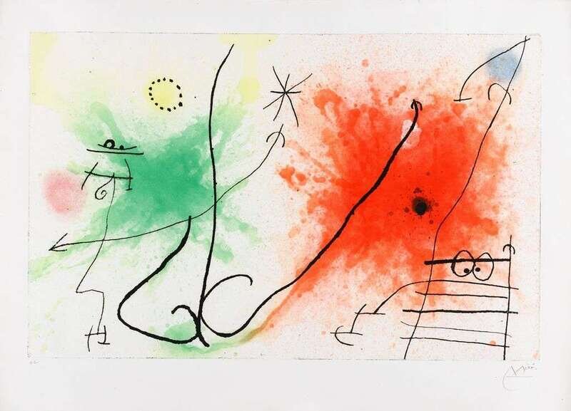 1967, pencil signed and inscribed H.C. (the edition was 75), with wide margins; Maeght, Paris, publisher. Color etching and aquatint on Mandeure rag.