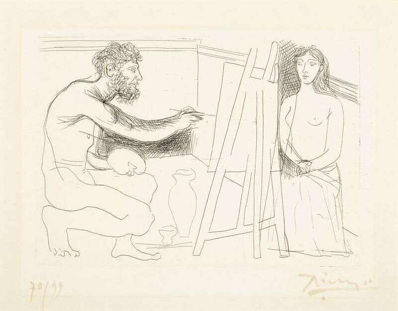 PABLO PICASSO (SPANISH 1881-1973) "PEINTRE DEVANT SON CHEVALET AVEC UN MODELE AUX LONGS CHEVEUX"FROM "LE CHEF- D'OEUVRE INCONNU"