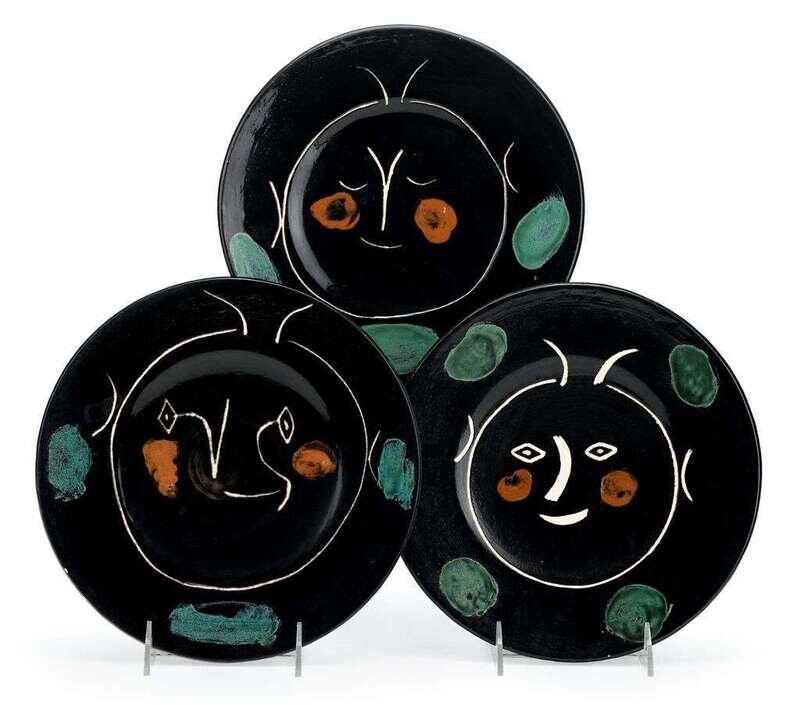 1948, edition 100. Inscribed 'A' and with 'Madoura Plein Feu' and 'Edition Picasso' stamps verso, glazed ceramic plate painted in colors