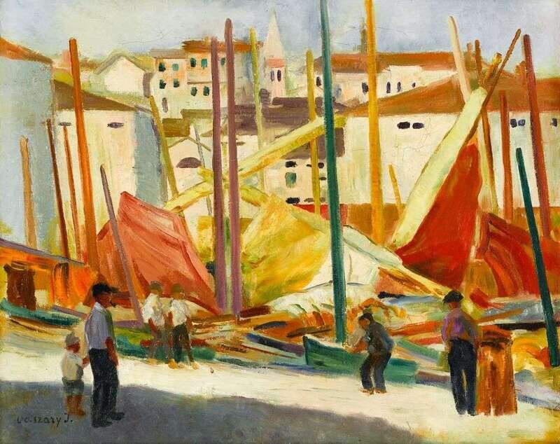 JANOS VASZARY (HUNGARIAN 1867-1939) FISHING BOATS