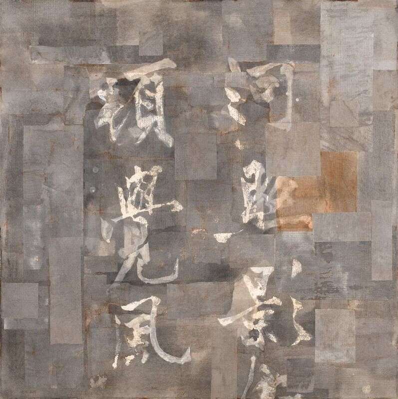 Signed, titled and dated in English and Chinese verso, acrylic and paper laid down to canvas