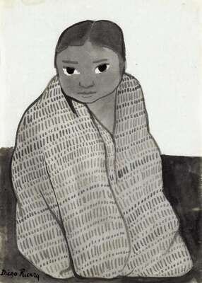 Signed 'Diego Rivera' bottom left, ink on Japanese paper