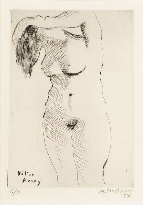MILTON AVERY (AMERICAN 1885-1965) "NUDE COMBING HAIR"