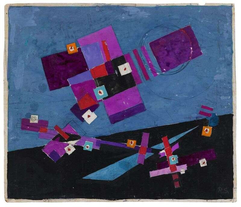 ROLPH SCARLETT (AMERICAN 1891-1984) GEOMETRIC ABSTRACTION WITH RED, PURPLE AND LAVENDER