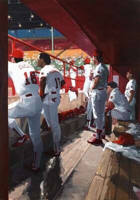 JOHN HULL (AMERICAN B. 1952) "DUGOUT AT NIGHT: RALLY"