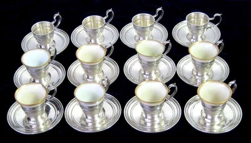 Twelve sterling silver demitasse cups and saucers gorham, providence, ri