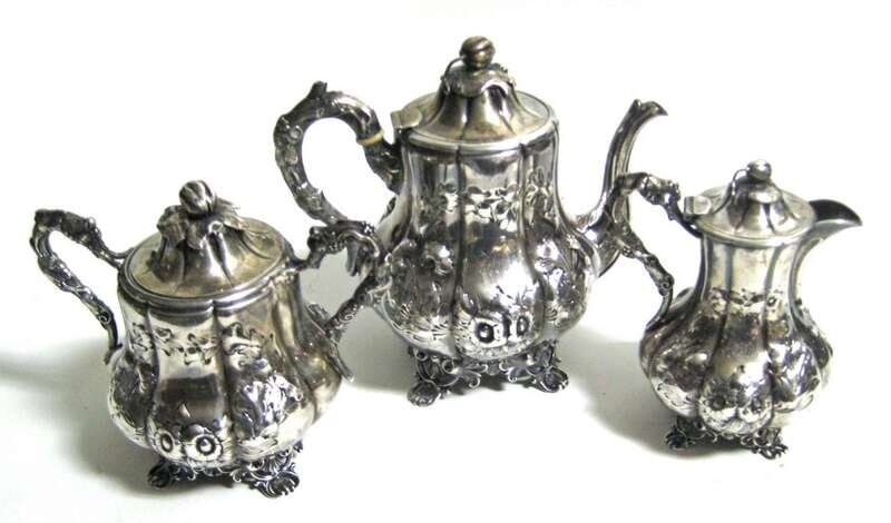 Sterling silver part tea service charters, cann, & dunn, new york, mid 19th century