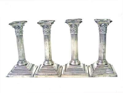 Four weighted Corinthian column form candlesticks gorham, providence, ri, early 20th century