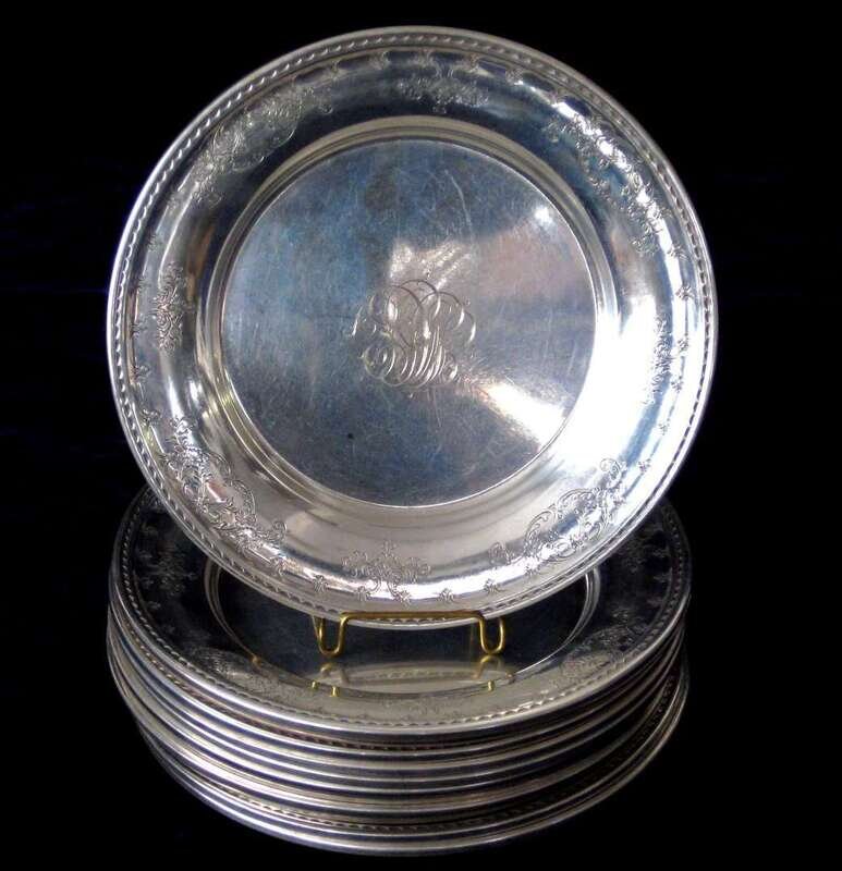 Set of twelve sterling silver bread plates dominick and haff, 20th century