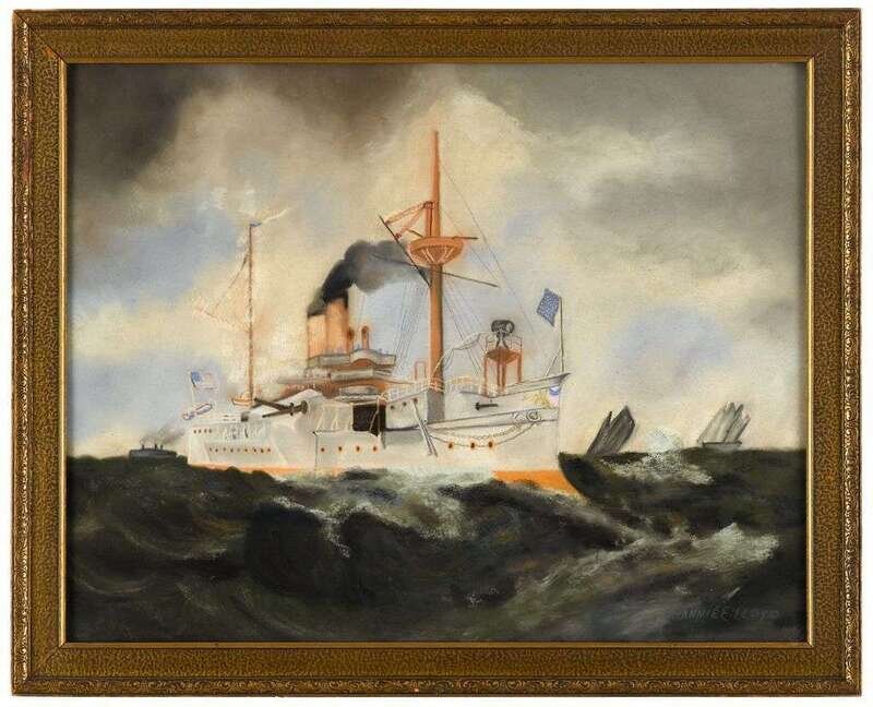 American School 19th/20th century spanish american war battleship in open waters