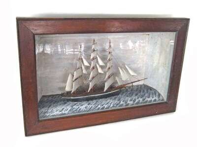 Shadow box with carved and painted Clipper ship late 19th century