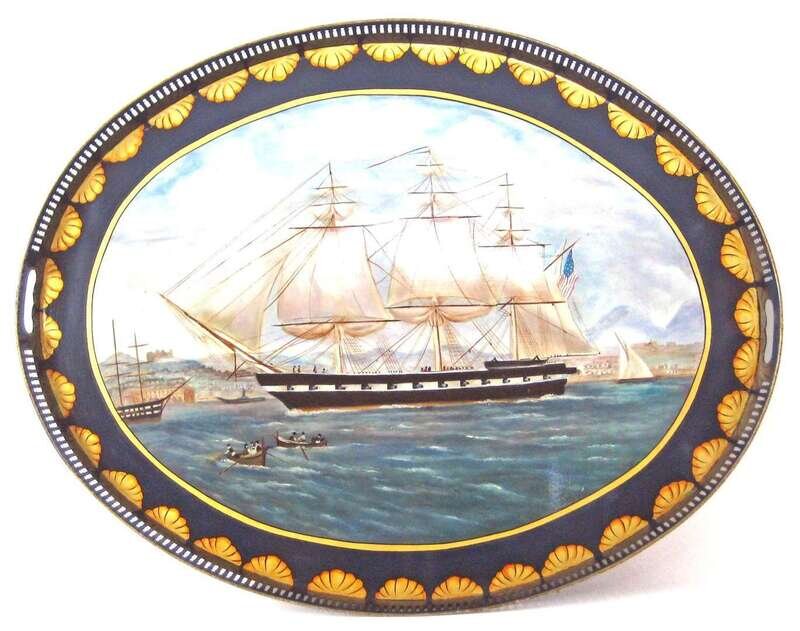 Painted and decorated oval tray joan austin, maryland and florida, 20th century