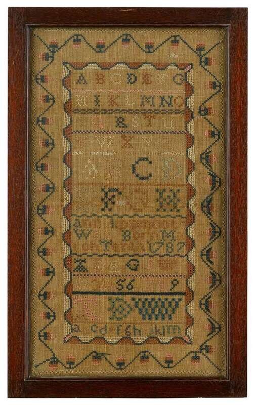 Needlework sampler "ann lippincott was born march tenth 1787," new jersey