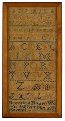 Needlework sampler "henrietta hauer worked this sampler in the seventh year of her age," circa 1823