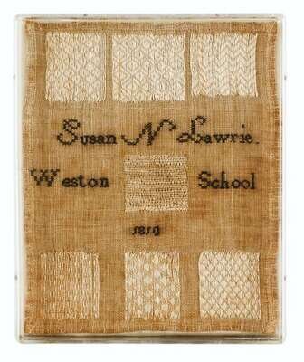 Darning sampler "susan n. lawrie, weston school, 1810," westtown school