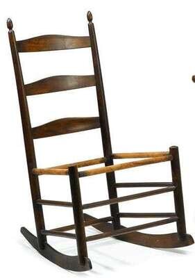 Shaker rocking chair No. 3 bears stamp of mt lebanon, new york