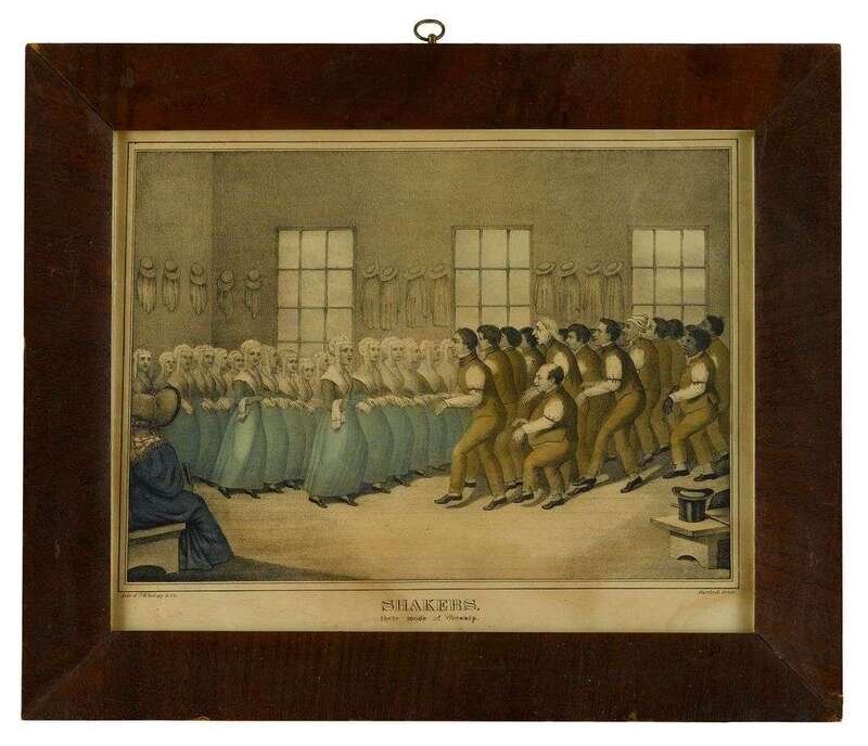 Hand-colored lithograph "shakers, their mode of worship," d.w.kellogg & co., hartford, ct.