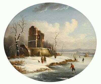 School of Louis Remy Mignot (1831-1870) a skating scene