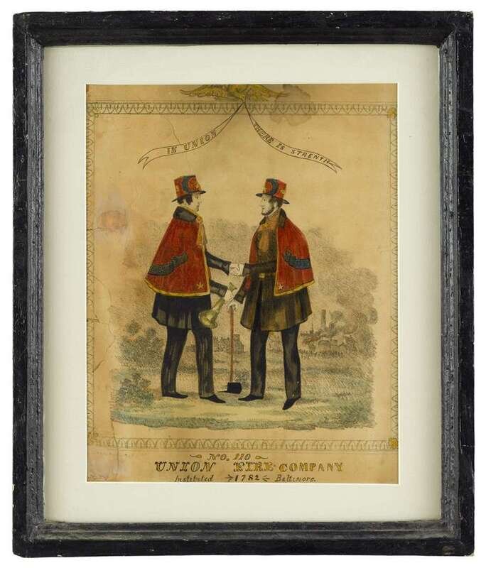 Inscribed "No. 110 Union Fire Company Institued 1782," watercolor and ink on paper.