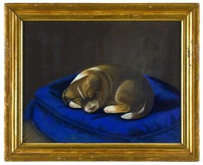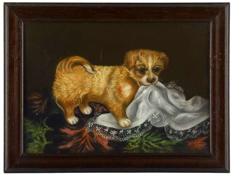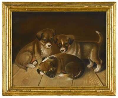 American School 19th century three works with puppies
