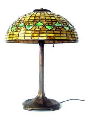 Leaded glass and patinated bronze table lamp tiffany & co, new york, ny, 20th century