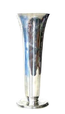 Of trumpet form chased with art nouveau decoration, on a circular base.