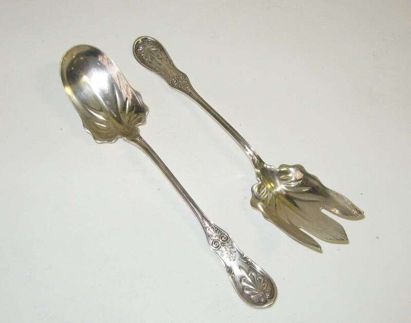 Sterling silver salad serving fork and salad serving spoon tiffany & co., new york, new york, issued 1870