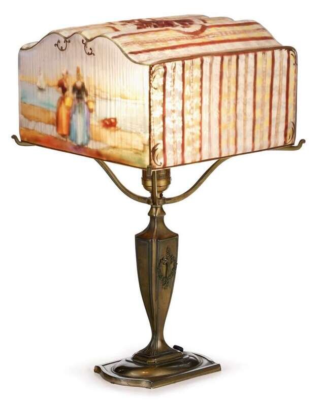 "Pompeii" reverse painted brass table lamp pairpoint, new bedford, massachusetts