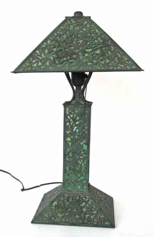 The pyramid form shade on squared standard with flared square base, the overlay in a flowering vine pattern.