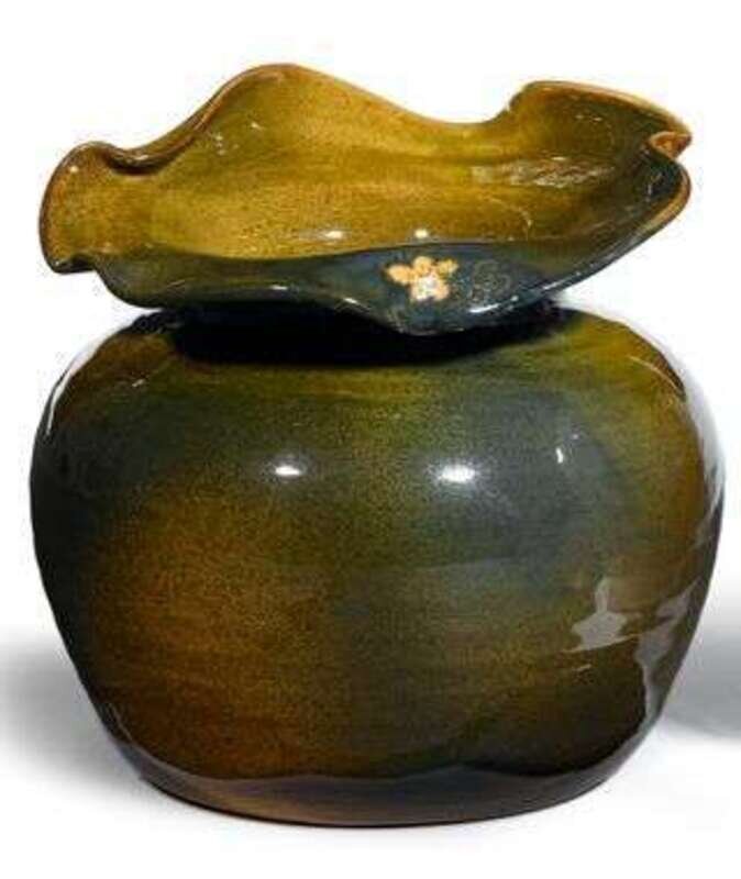 Of squat form with irregular ruffled rim, impressed "Rookwood 1886"