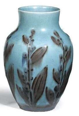Jewell glaze molded Art Pottery vase william henshall, decorator.rookwood pottery, cincinnati, ohio, 1928