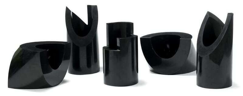 Group of five marble sculptures enzo mari, italian, b. 1932