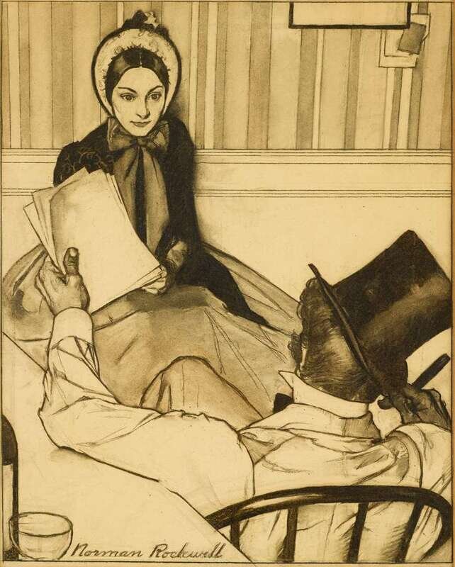 NORMAN ROCKWELL (AMERICAN 1894-1978) SCENE FROM 'THE MOST BELOVED AMERICAN WRITER' ('JO CONCOCTED A THRILLING TALE...')