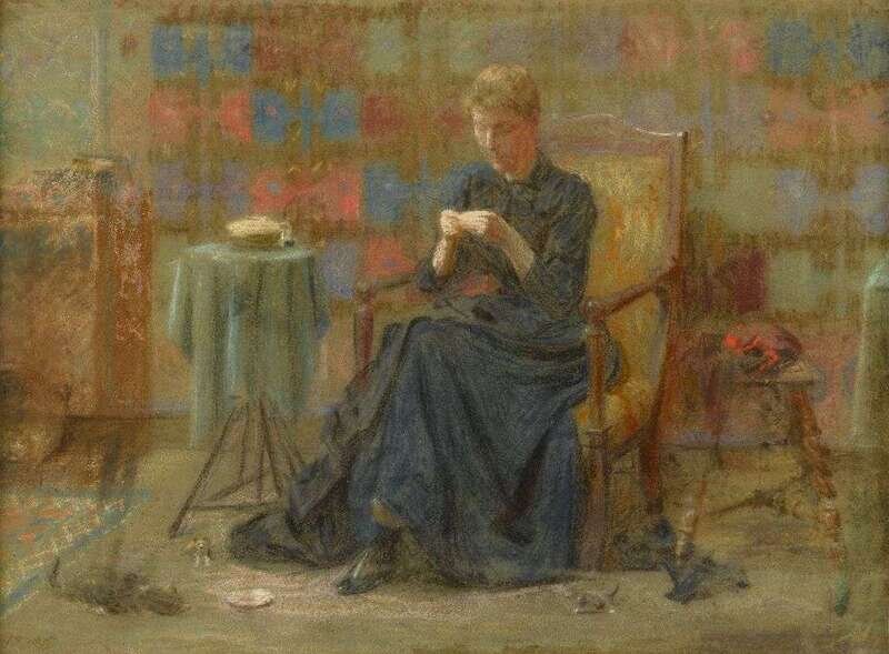 THOMAS P ANSHUTZ (AMERICAN 1851-1912) "WOMAN SEWING"