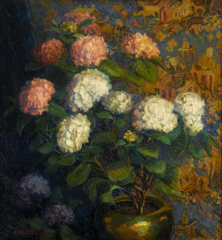 LAURA D. STROUD LADD (AMERICAN 1863-1943) "HYDRANGEAS"
